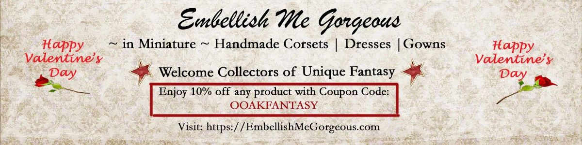 At Embellish Me Gorgeous, every miniature corset, gown and dress is not just paper and trim. It whispers romance, enchantment, elegance and whimsy in the magic of tiny couture in miniature. It's a touch of storytelling showcasing mini masterpieces for the stylish soul.
